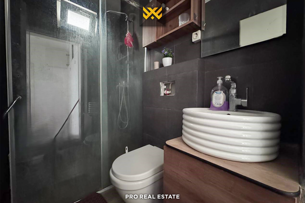 Banesa ka orientim nga perëndimi dhe ka këtë renditje të hapësirave të brendshme: dy hapësira të shfrytëzueshme dhe dy banjo.