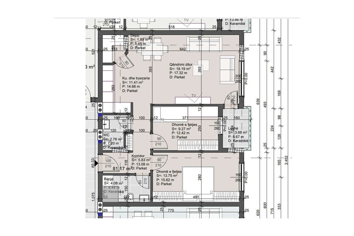 Banesa ka orientim nga lindja dhe ka këtë renditje të hapësirave të brendshme; qëndrim ditor, kuzhinë, dy dhoma gjumi, një banjo, tualet, depo dhe ballkon.