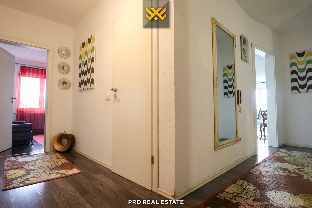 Ndërtesa ku ndodhet banesa është e pajisur me ashensor dhe ka hapësirë të mjaftueshme për vendparkim.
