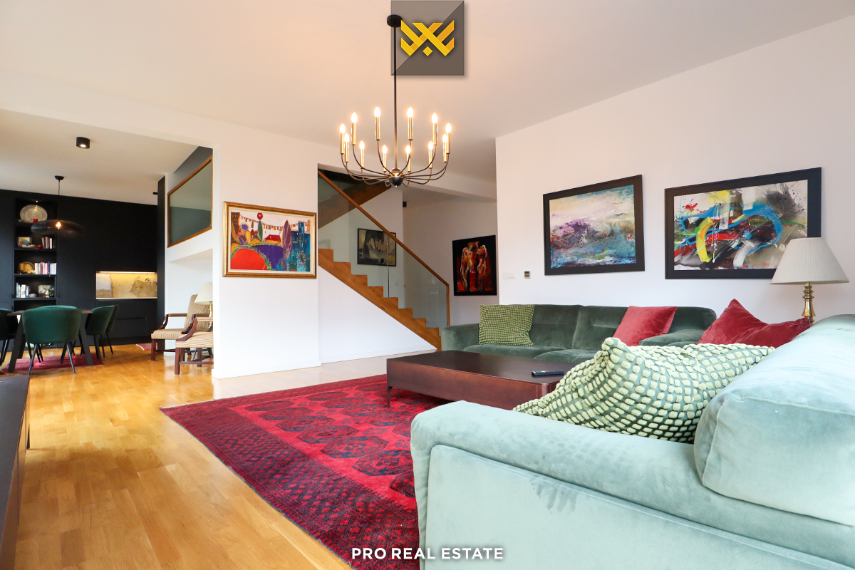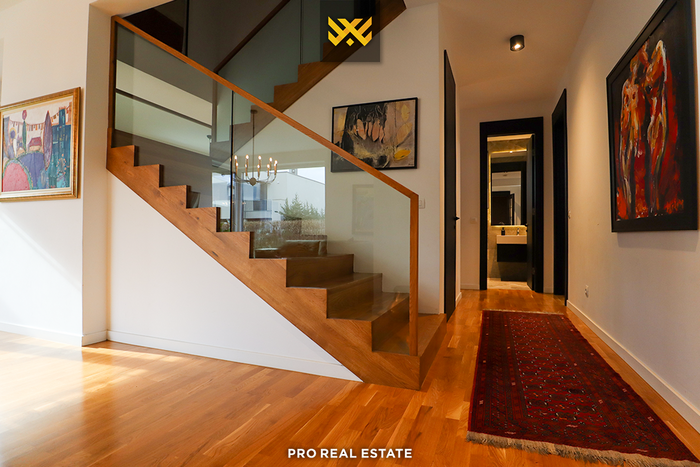 qëndrimi ditor, kuzhinë, pesë dhoma gjumi, njëra prej tyre master me garderobier, banjo, tri tualete, depo dhe tri ballkone.