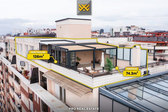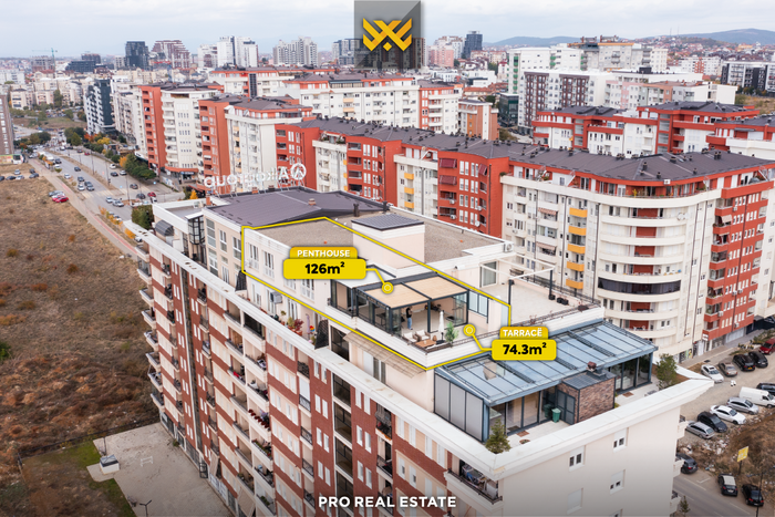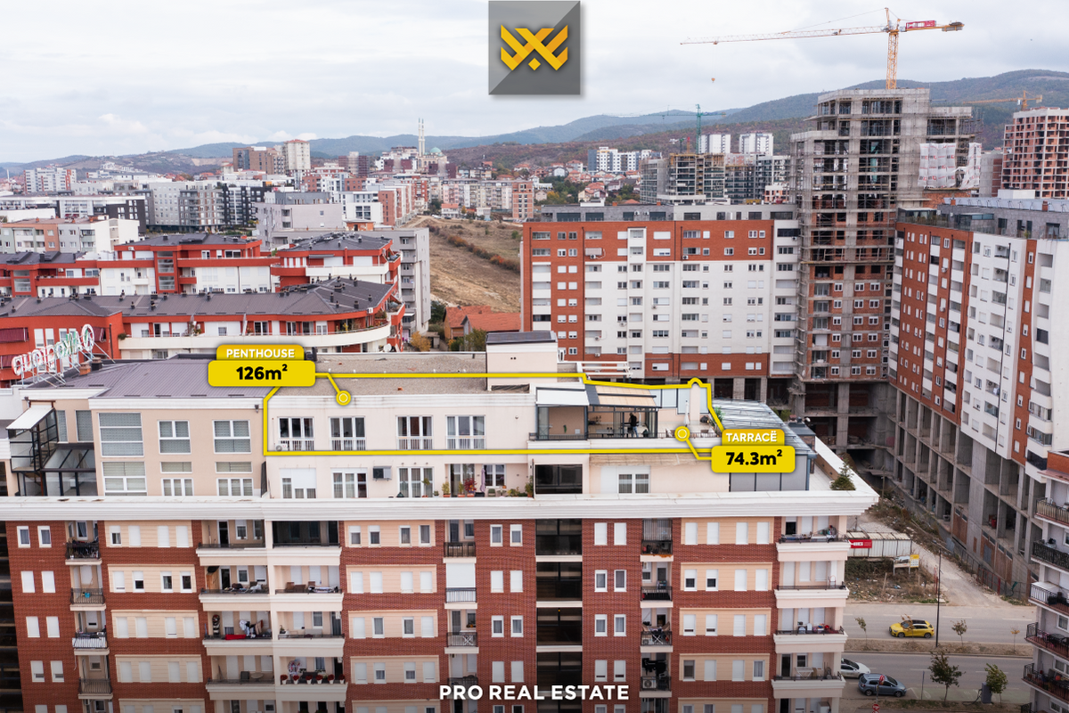 Ofrohet për shitje banesa penthouse me sipërfaqe banimi 126m² dhe tarracë me sipërfaqe 74.3m², me lokacion te Rruga C, në kompleksin Alko Group, ndërtim nga Alko Group.