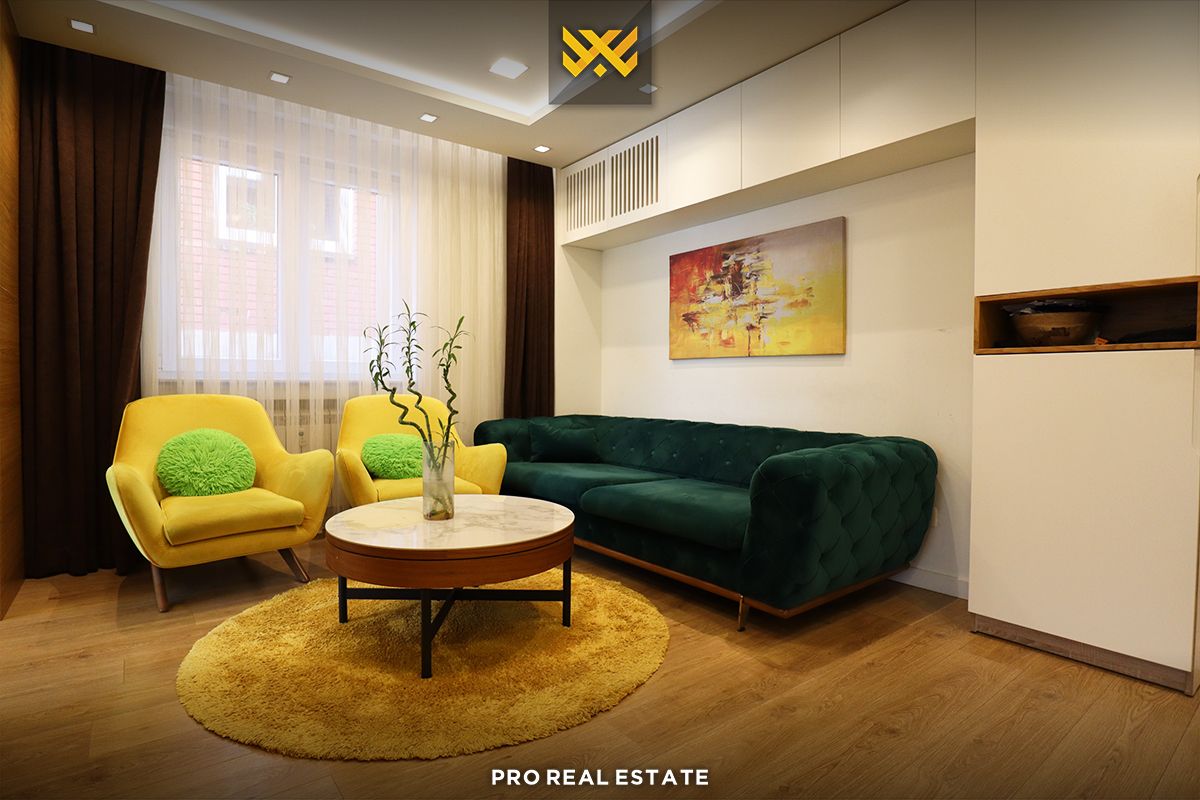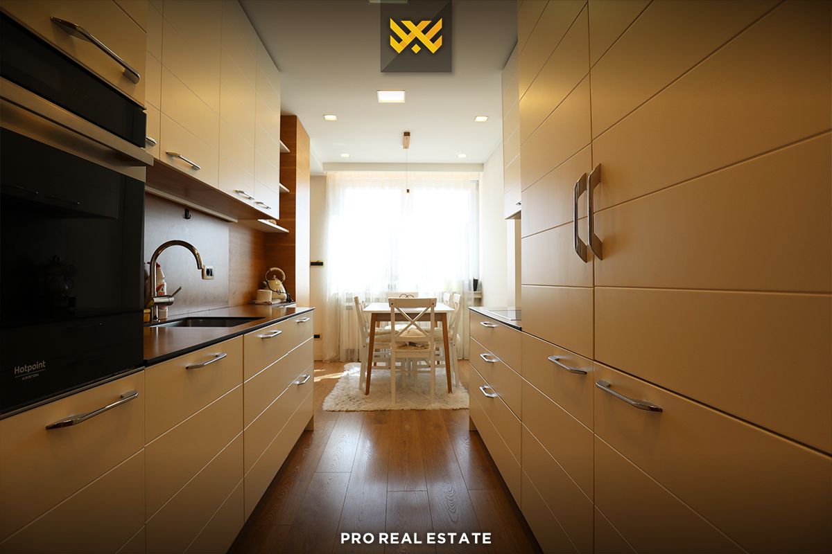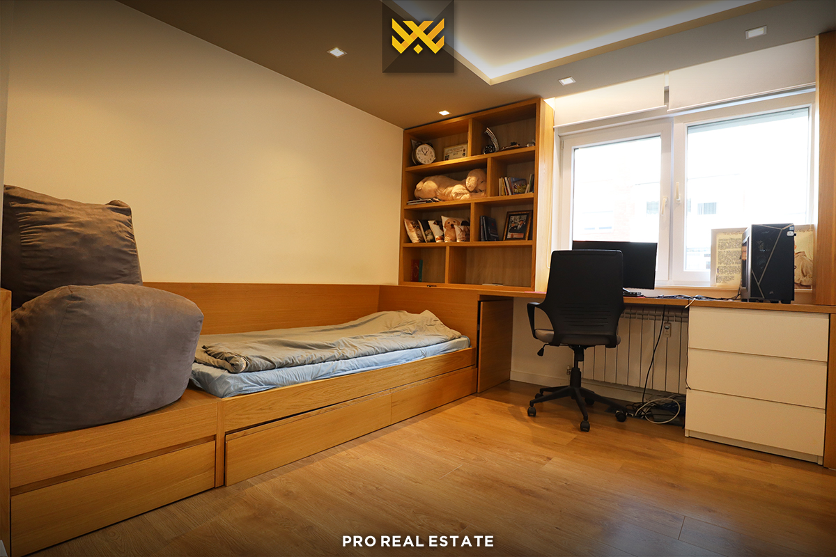 Banesa ka orientim nga perëndimi me këtë renditje të hapësirave të brendshme: qëndrim ditor, kuzhinë, tri dhoma të gjumit, dy banjo dhe dy ballkone. Banesa është tërësisht e mobiluar me mobilie cilësore dhe organizuara mirë, duke ngrit edhe më lartë cilësinë e kësaj banese.