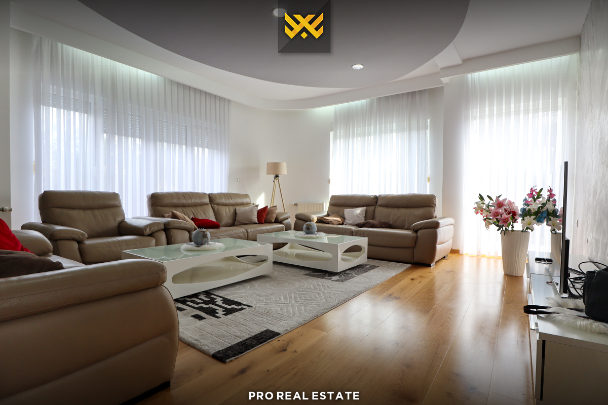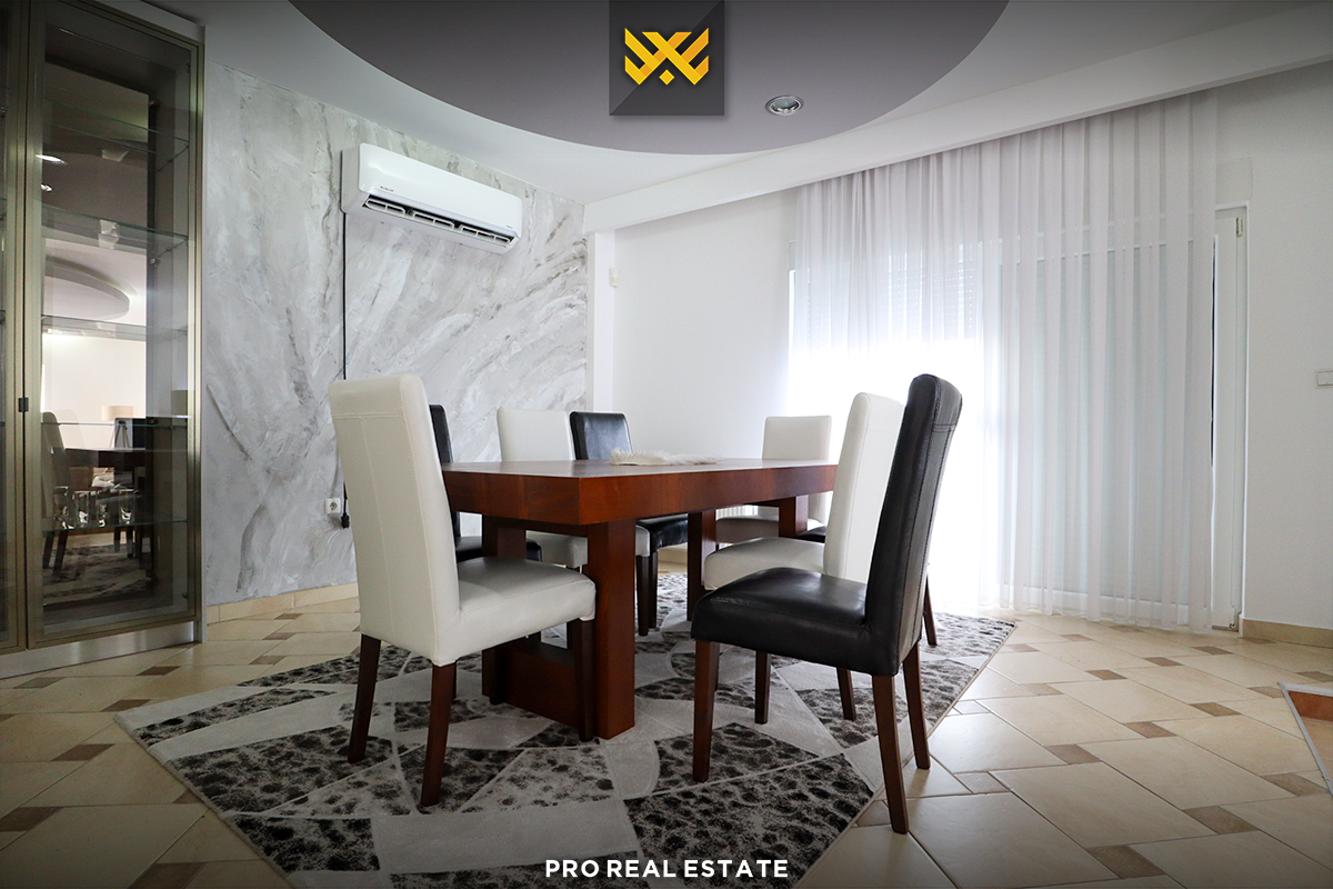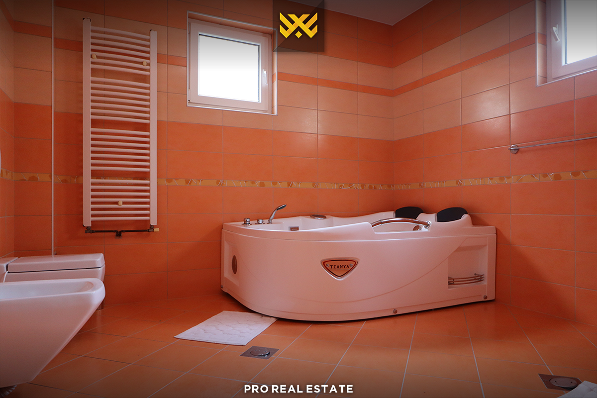 Shtëpia ka orientim të mirë nga të gjitha anët, e strukturuar në përdhes dhe dy kate dhe ka këtë renditje të hapësirave të brendshme: q#ndrim ditor, kuzhinë, pesë dhoma gjumi me njërën prej tyre master, dy banjo si dhe terasë.