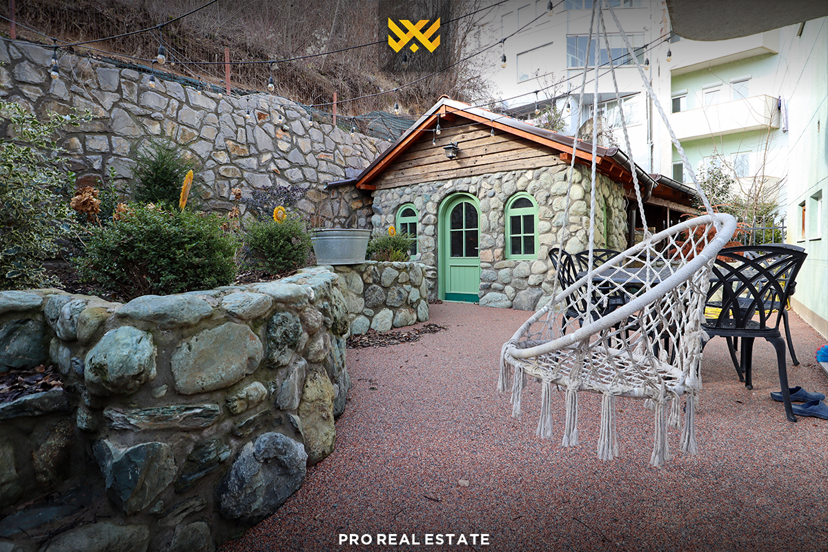 Shtëpia ka oborr shumë të mirëmbajtur si dhe oborrin prapa shtëpisë me hapësira relaksuese, ndërsa ofron edhe hapësirë të mjaftueshme për vendparkim.
