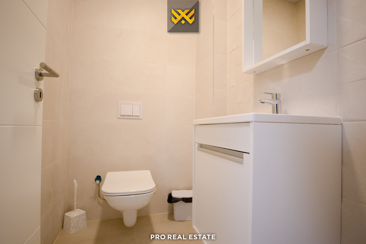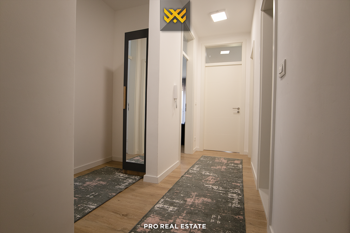 Ndërtesa ku ndodhet banesa është e pajisur me ashensor, ka hapësirë të mjaftueshme për vendparkim dhe ofron garazh.