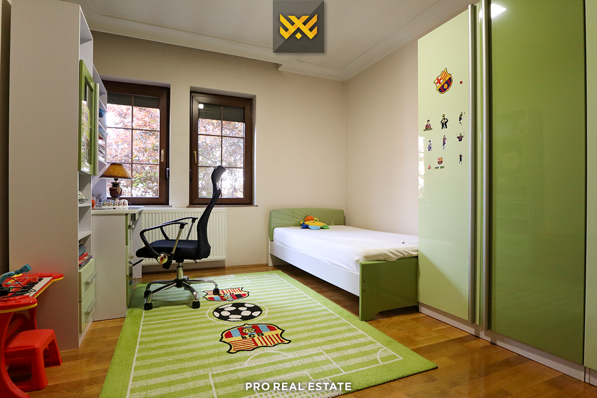 Shtëpia gjendet në një lagje private të qetë dhe të sigurtë, me mundësi shumë të mira për zhvillimin e një jete komode.