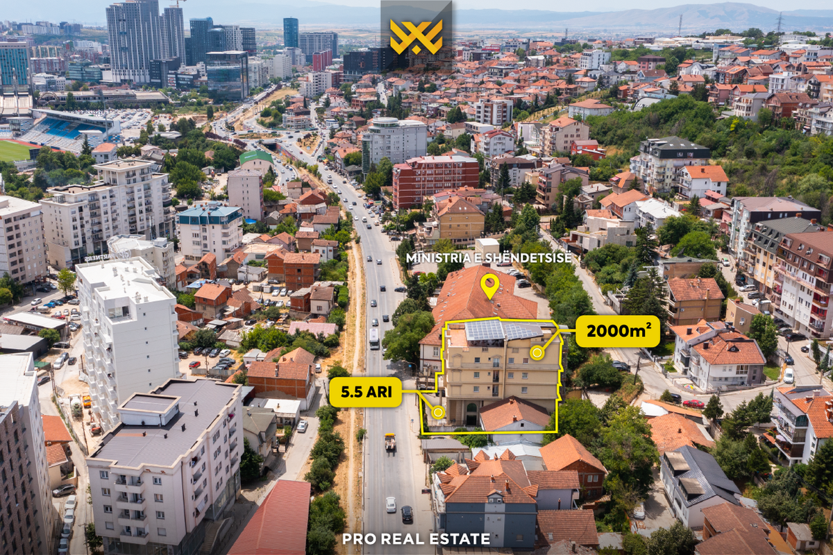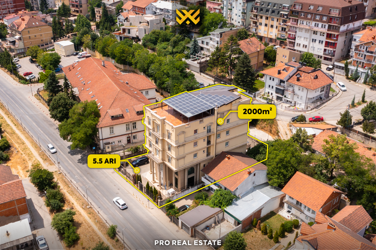 Ndërtesa është e ndërtuar në një parcelë prej 5.5 ari.