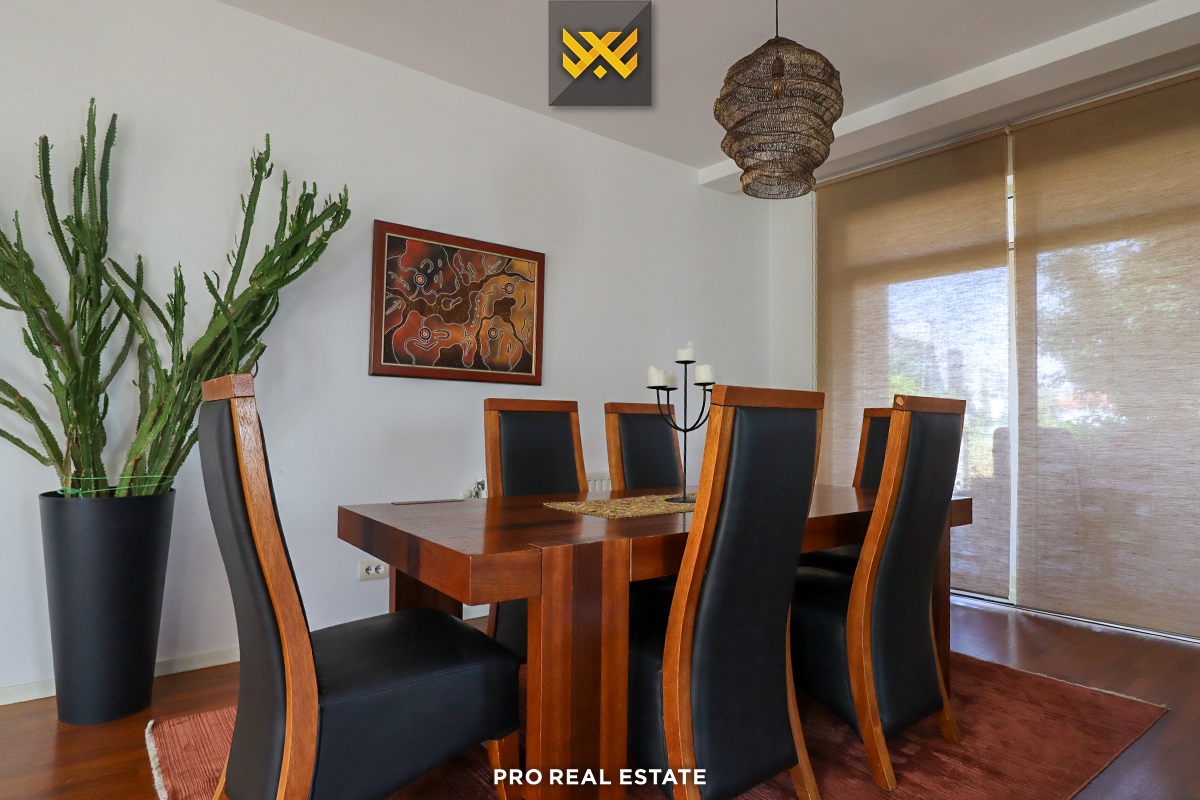 Shtëpia ka orientim nga lindja, është e strukturuar në bodrum, përdhes, një kat dhe nënkulm me këtë renditje të hapësirave të brendshme: qëndrim ditor, kuzhinë me tryezari, katër dhoma gjumi, një dhomë pune, utilit, depo, tri banjo, terasë dhe ballkon.
