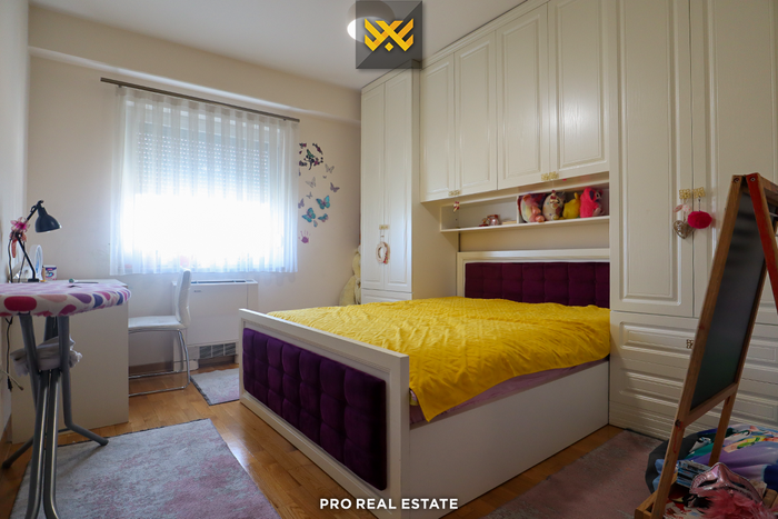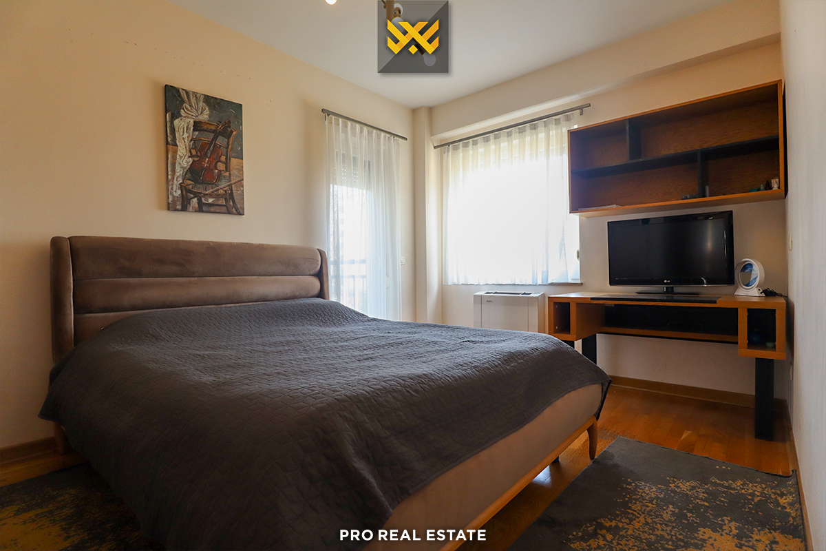 Ndërtesa ku ndodhet banesa është e pajisur me ashensor, ka hapësirë të mjaftueshme për vendparkim dhe ofron dy garazha.