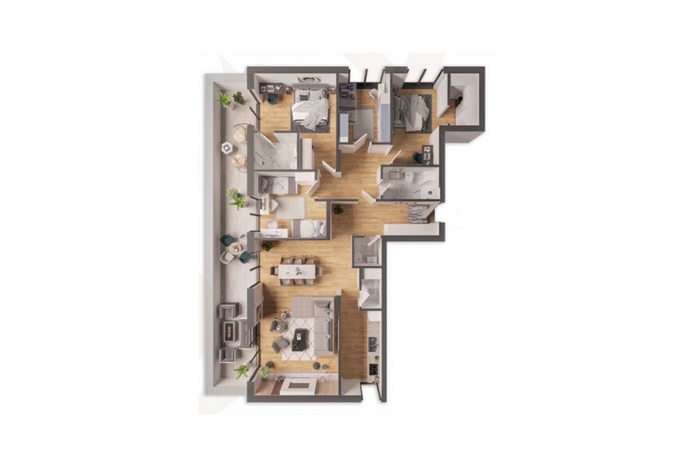Ofrohet për shitje banesa penthouse me sipërfaqe banimi 184m² dhe terasë me sipërfaqe 32.4m², me lokacion te Prishtina e Re, kompleksi City View, ndërtim nga Dard Construction.