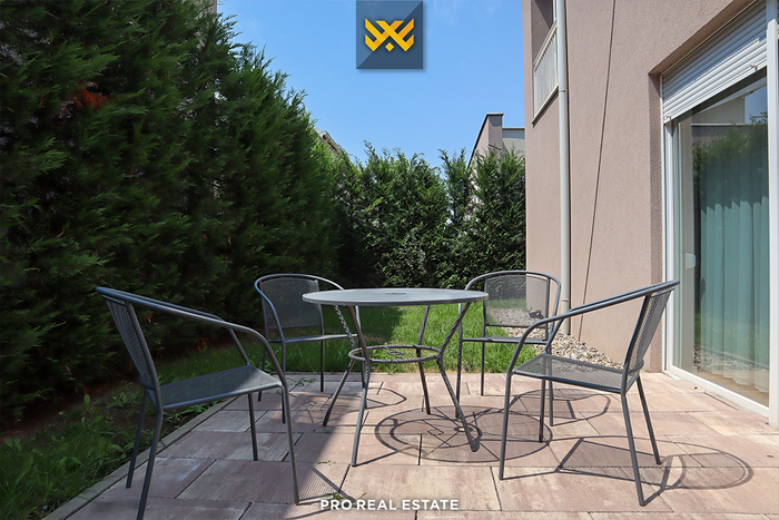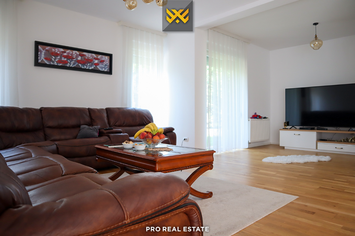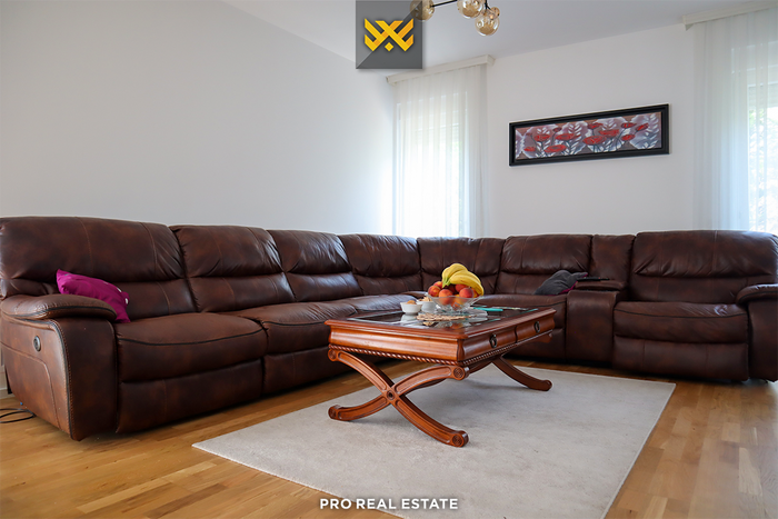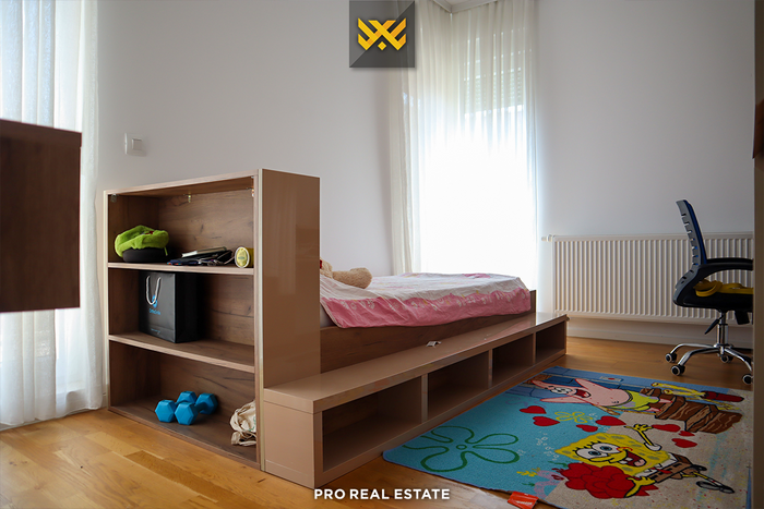 Shtëpia ka oborr me hapësirë të gjelbëruar dhe hapësira pushimi, hapësirë në garazh për tri vetura ndërsa ka edhe sistemin automatik të ujitjes në kopsht nga bunari.