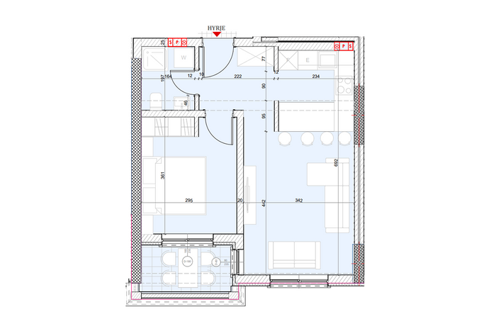 Banesa ka këtë renditje të hapësirave të brendshme; qëndrim ditor, kuzhinë me tryezari, një dhomë gjumi, banjo dhe ballkon.