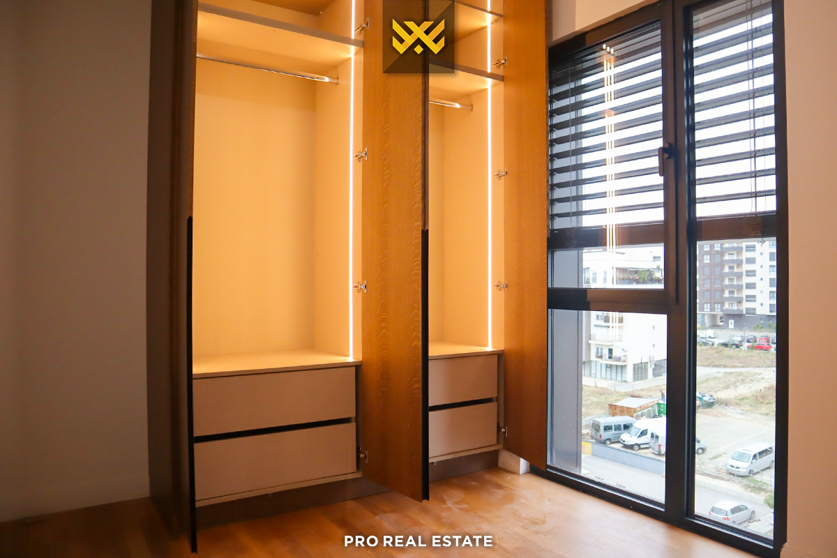Kompleksi ku ndodhet banesa është i pajisur me ashensor, ofron garazhë me depo të përfshira në çmim dhe ka hapësirë të mjaftueshme për vendparkim.