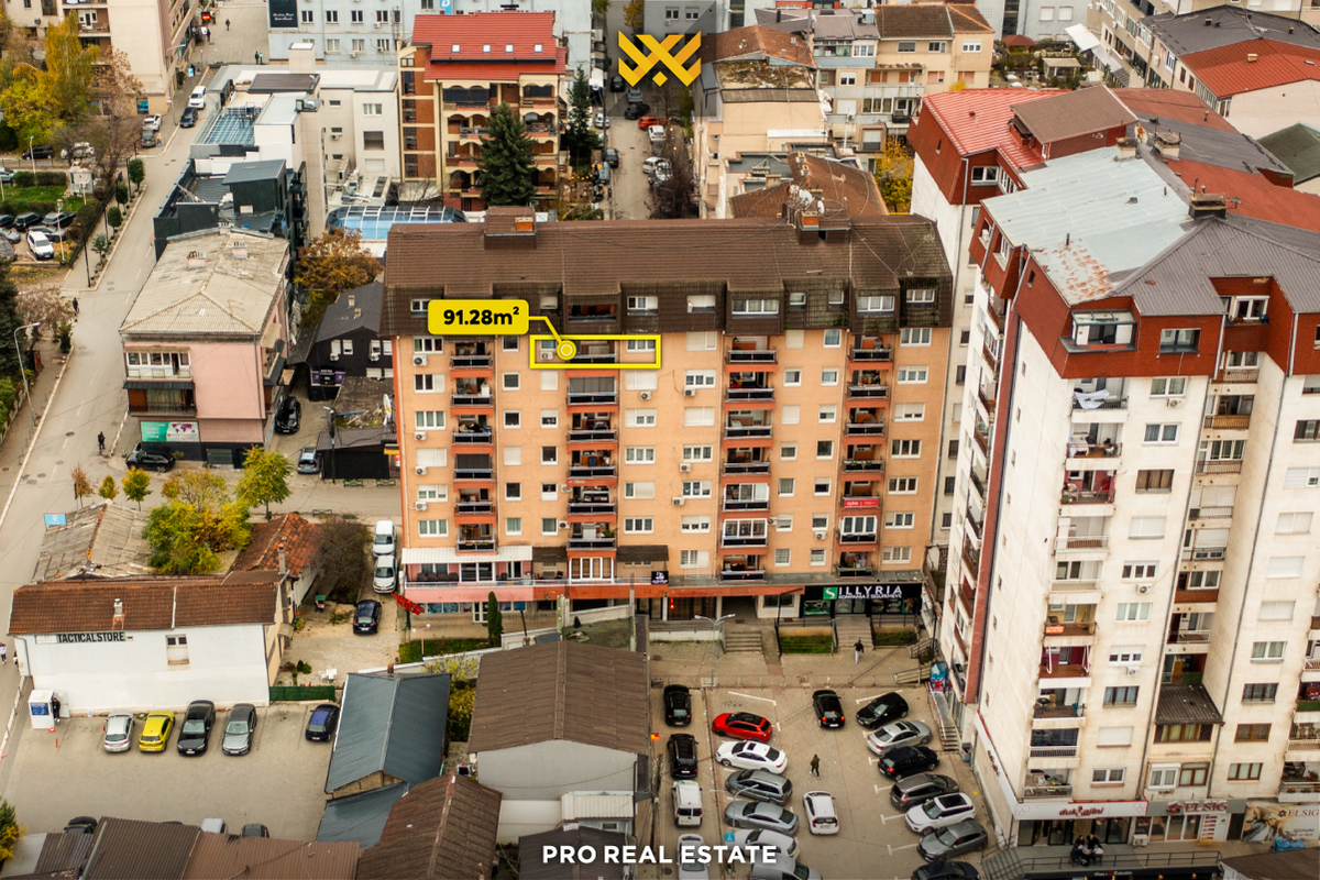 Ofrohet me qira banesa me sipërfaqe 91.28m², e pozicionuar në qendër të Prishtinës, rruga "Hajdar Dushi", afër Dormeo.