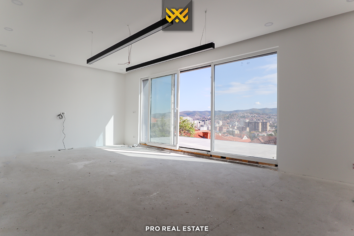Shtëpia ka orientim nga lindja, është e strukturuar në përdhes dhe tri kate me këtë renditje të hapësirave të brendshme: 11 hapësira të shfrytëzueshme, pesë banjo, utilit, katër tarraca dhe dy depo me sipërfaqe 70m².