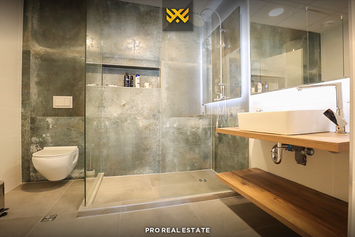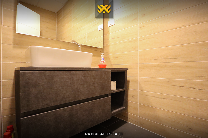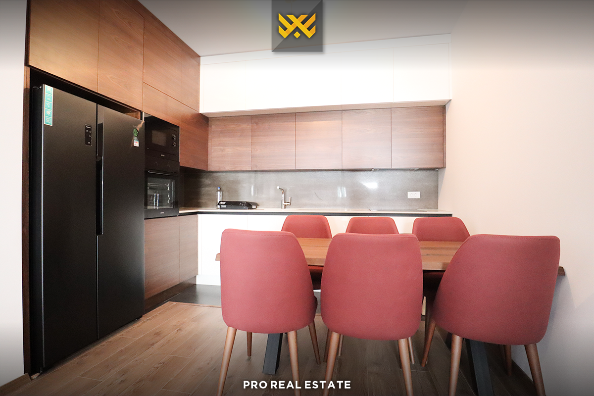 Ndërtesa ku ndodhet banesa është e pajisur me dy ashensorë, ofron garazh dhe hapësirë të mjaftueshme për vendparkim.