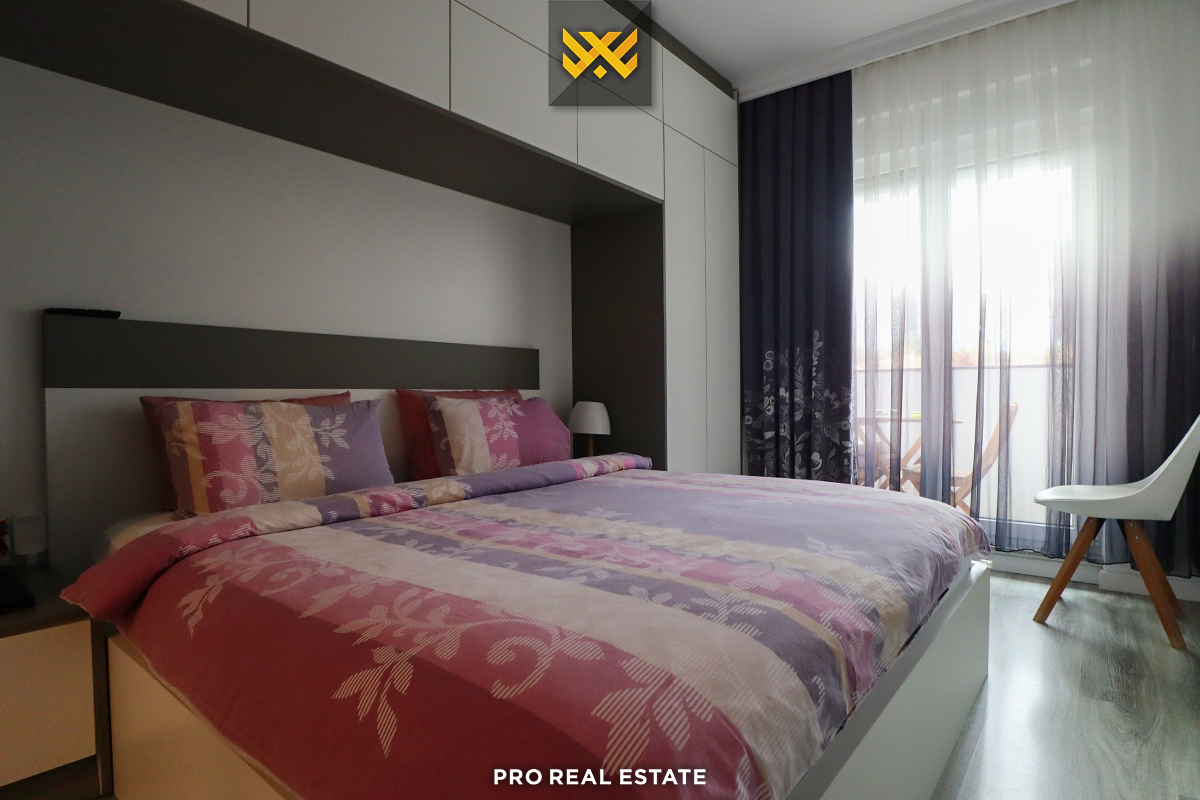 Ndërtesa ku ndodhet banesa është e pajisur me ashensor dhe ofron hapësirë për vendparkim.