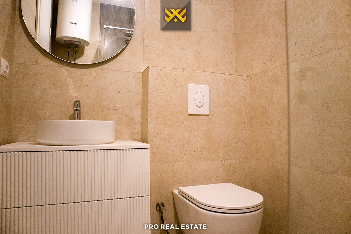 Banesa ka sistemin Smart Home me Dirixhim nga larg i ngrohjes, ndriçimit, roletave dhe të tjera, dyer me lartësi 260cm nga BINNI, parket ekskluziv nga Ontex, ngrohje në dysheme REHAU me termosrata digjital në çdo hapsirë, kalldajë të sistemit Vaillant, ashensorë ThyssenKrupp, dritare Rehau me 3 xhama dhe roleta me rrymë, rafstore zvicerane, izolim i lartë termik (deri në 53cm muret e jashtme), izolim akustik perfekt, statika deri në 9 ballë dhe hapësira gjelbërimi.