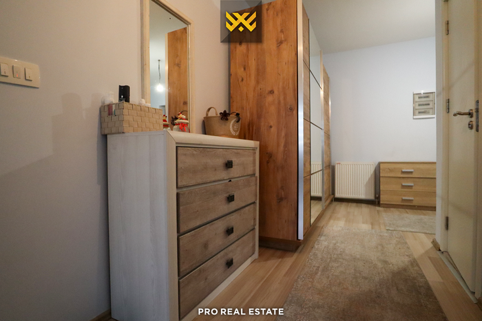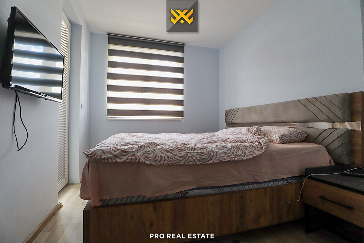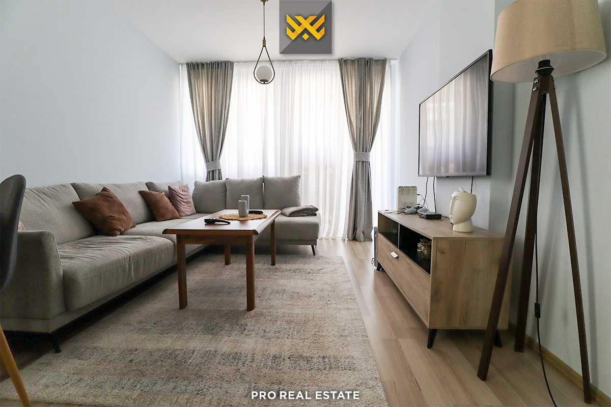 Banesa ka orientim nga perëndimi dhe jugu dhe ka këtë renditje të hapësirave të brendshme; qëndrim ditor, kuzhinë, dy dhoma gjumi, banjo, depo dhe dy ballkone.