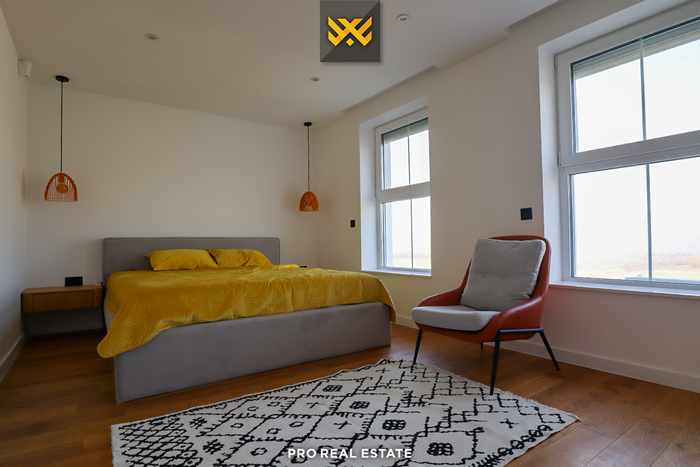 Shtëpia është tërësisht e mobiluar, hapësirat e brendshme janë të gjitha funksionale dhe të shfrytëzueshme.