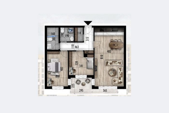 Banesa ka orientim nga veriu, me sipërfaqe 99.18m² dhe kanë këtë renditje të hapësirave të brendshme; qëndrim ditor, kuzhinë me tryezari, dy dhoma gjumi, një banjo, tualet, depo dhe ballkon.