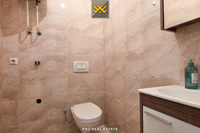 Banesa ka orientim nga jugu dhe veriu me këtë renditje të hapësirave të brendshme: qëndrim ditor, kuzhinë, tri dhoma të gjumit, banjo, tualet dhe ballkon.