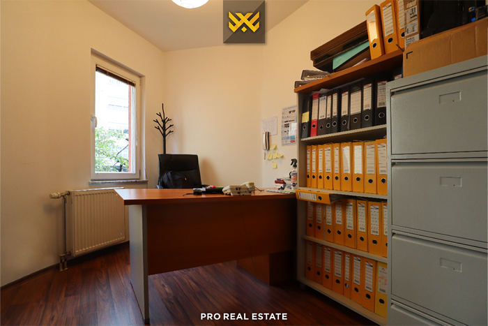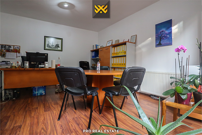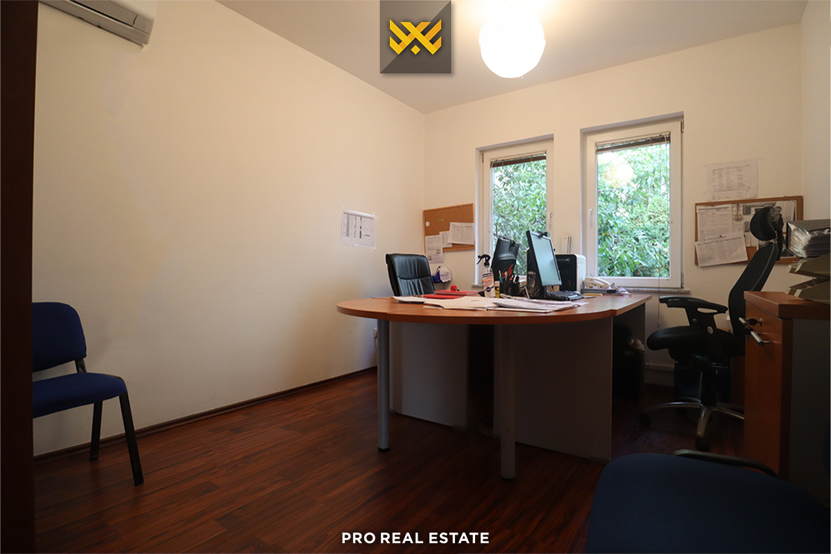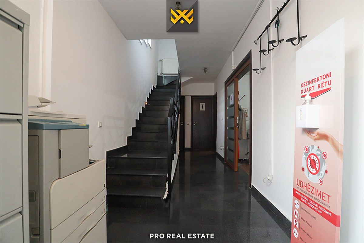 Përfshinë dy objekte, njëri ka 280m² dhe përfshinë katet P+2 dhe tjetri ka 40m². Shtëpia posedon ngrohje qëndrore me rrymë dhe ka vendparkim të mjaftueshëm, gjithashtu ndodhet në një lokaciono me çasje të shpejtë në Qendër dhe është shumë e përshtatshme për zyre.