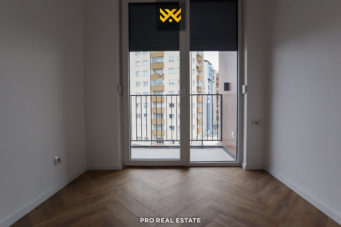 Banesa ka orientim nga veriu dhe jugu dhe ka këtë renditje të hapësirave të brendshme; kuzhinë, dy hapësira pune, një banjo, tualet dhe dy ballkone.