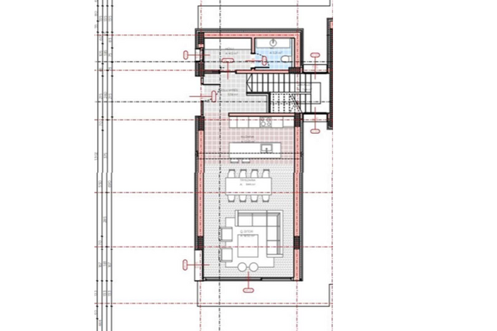 Villa ka sipërfaqe prej 207.04m² mbi tokë, sipërfaqe prej 13.65m² nëntokë, verandë me sipërfaqe 55.26m² dhe pishinë me sipërfaqe 24.33m².