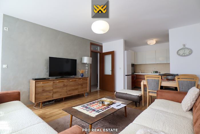 Ndërtesa ku ndodhet banesa është e pajisur me ashensor, ofron garazh dhe hapësirë për vendparkim.