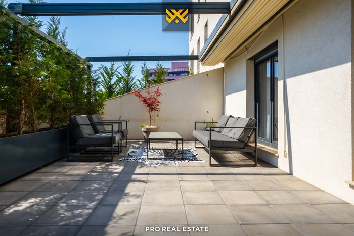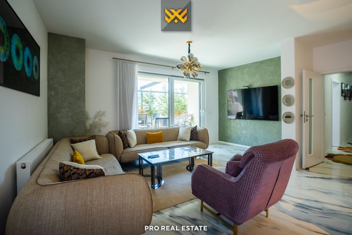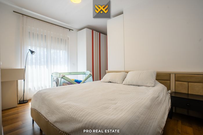 Kompleksi është objekt i projektuar nga arkitektë të njohur të vendit, është i pajisur me ashensor dhe banesa ofron dy garazha.