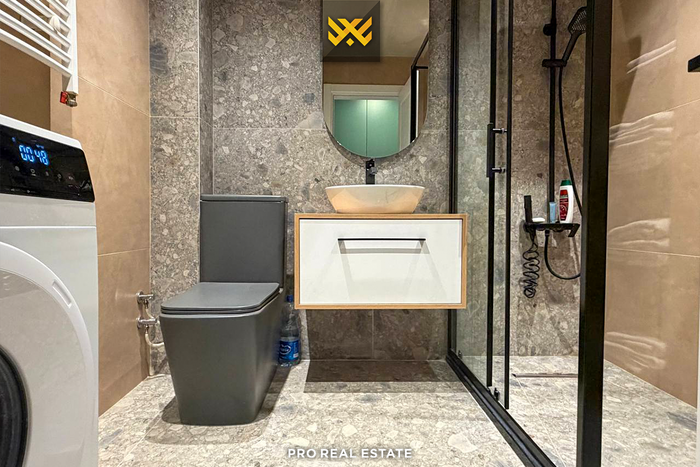 Ndërtesa ku ndodhet banesa është e pajisur me ashensor dhe ka hapësirë për vendparkim.
