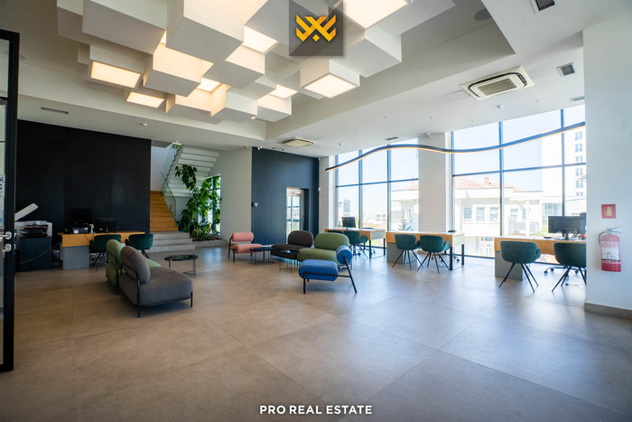 Lokali është i strukturuar në bodrum me depo ku dhe ofron 10 garazha, përdhes dhe kati i parë me sipërfaqe 584.81m² dhe kati i dytë si kat i integruar me sipërfaqe 95m².