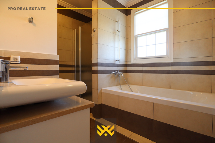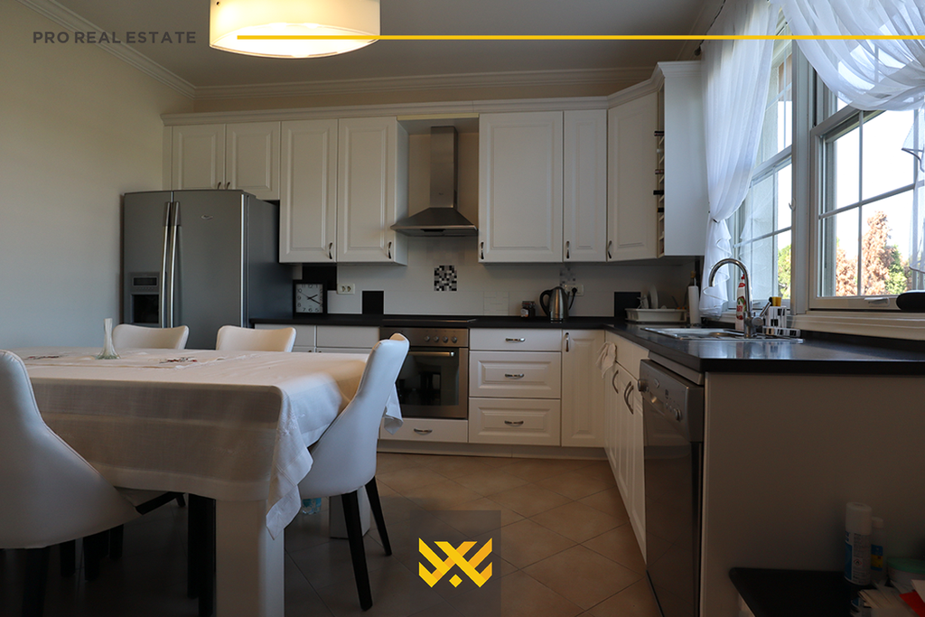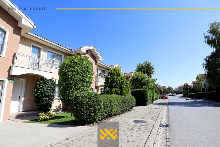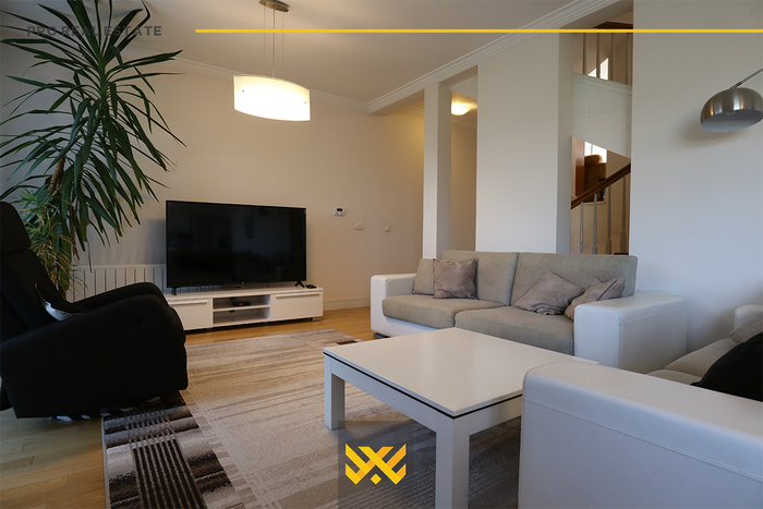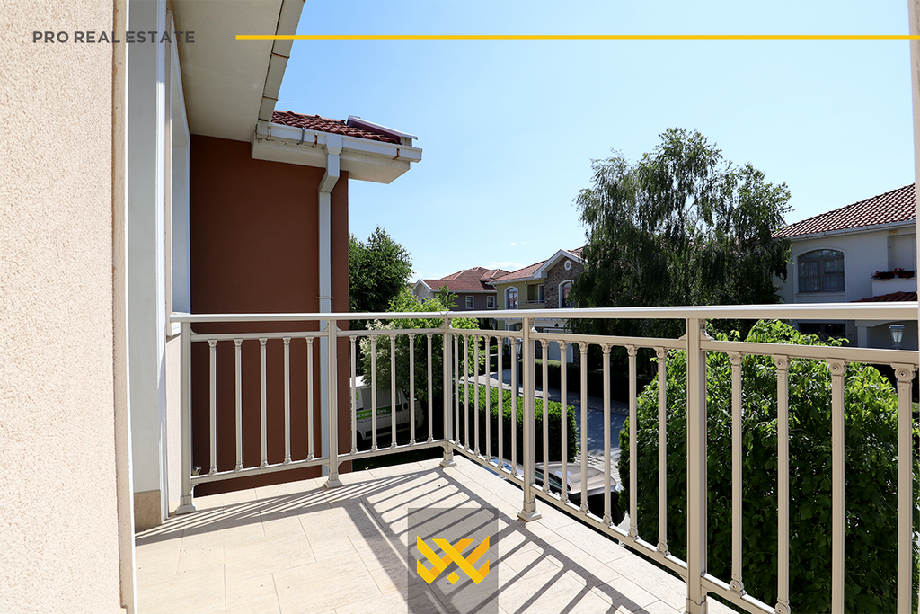 Shtëpia me sipërfaqe 250m² ndodhet në Fshatin Ndërkombëtar. Është tërësisht e mobiluar, shumë moderne, me mobilie tejet elegante, e kombinuar me shumë stil dhe elegancë, që e bëjnë shtëpinë të duket jashtëzakonisht moderne, komode dhe e veçantë, e ndarë në bodrum dhe dy kate, me një renditje të këtillë: qëndrimin ditor, kuzhinën, tri dhoma të gjumit, dy banjo, një tualet dhe dy ballkone. Shtëpia posedon edhe një terasë me oborr shumë të mirëmbajtur. Sistemin e ngrohjes e ka Geo-termike. Ndodhet në një vend që ofron kushte shumë të mira banimi, qetësi, qasje të shpejtë në rrugë kryesore dhe hapësirë parkingu të mjaftueshme.