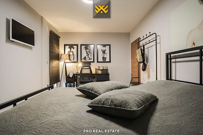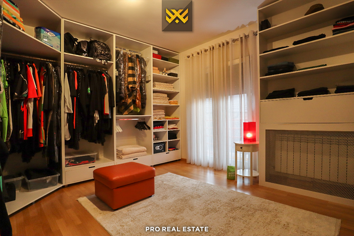 Në katin e parë ka dy dhoma gjumi me njërën prej tyre master me banjo dhe garderober, banjo dhe dy ballkone;