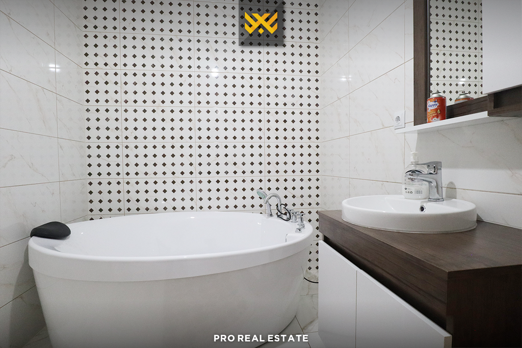Është e ndarë në katin përdhesë dhe dy kate të tjera, me një renditje të këtillë: kati përdhesë ka qëndrimin ditor, kuzhinën dhe një banjo, kati i parë ka tri dhoma të gjumit, një banjo dhe një ballkon, ndërsa kati i dytë ka dy dhoma të gjumit, një banjo dhe një ballkon.