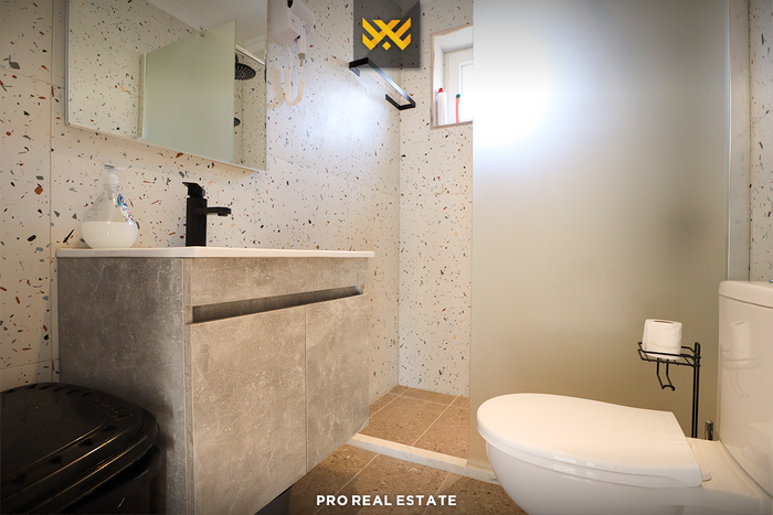Shtëpia ka orientim nga të gjitha anët që ofron kështu ndriçim natyral në të gjitha hapësirat gjatë gjithë ditës: qëndrim ditor, kuzhinë, dy dhoma të gjumit, një banjo dhe një ballkon.