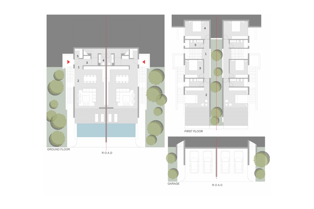 Vila individuale dhe vila dyshe, të njësive standard, premium dhe elite, të cilat kanë sipërfaqe nga 170m² deri në 290m², të cilat fillojnë nga tri deri në gjashtë dhoma të gjumit.