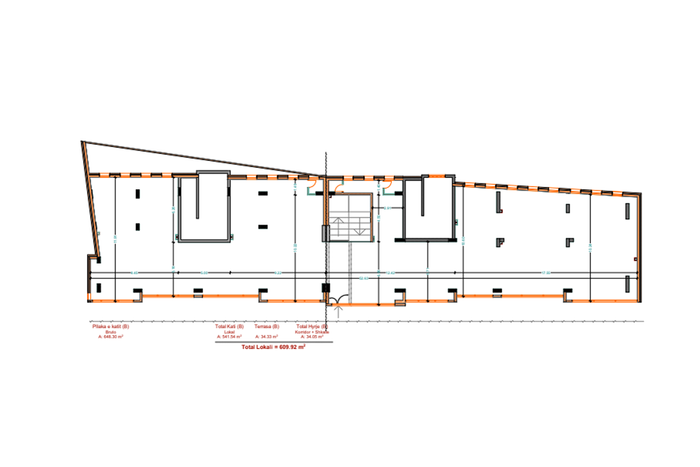 Lokali me sipërfaqe 609.92m² ndodhet në Tophane, afër Ministrisë së Shëndetësisë, me orientim nga lindja dhe perëndimi.