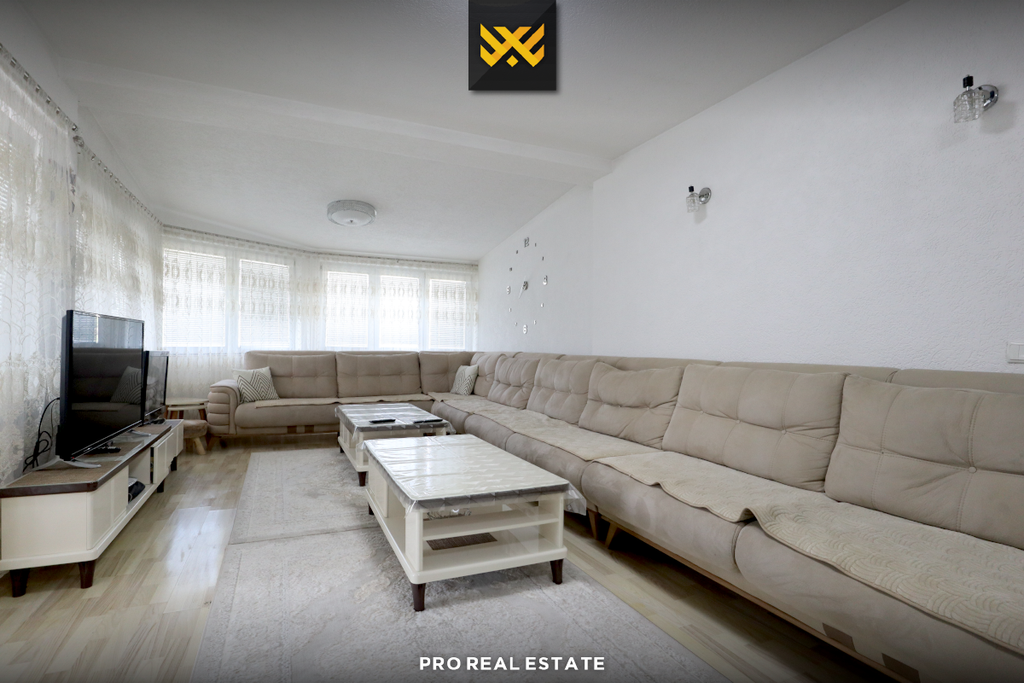 Shtëpia me sipërfaqe 400m² ndodhet në Emshir, afër Garden-it. Është tërësisht e mobiluar, moderne dhe e renditur në këtë mënyrë: kati i parë ka qëndrimin ditor, dy kuzhina, katër dhoma të gjumit, një banjo dhe terasën 20m², ndërsa përdhesa është lokal më një hapësirë prej 200m² dhe dy banjo, i cili mund të lëshohet për qira me vlerë prej 600€. Sistemin e ngrohjes e ka me energji elektrike. Shtëpia ndodhet në truall 1.5 Ari, si dhe posedon kamera sigurie private dhe hapësirë parkingu për tri vetura. Ka lokacion shumë të përshtatshëm dhe qasje të shpejtë në rrugët kryesore të kryeqytetit.