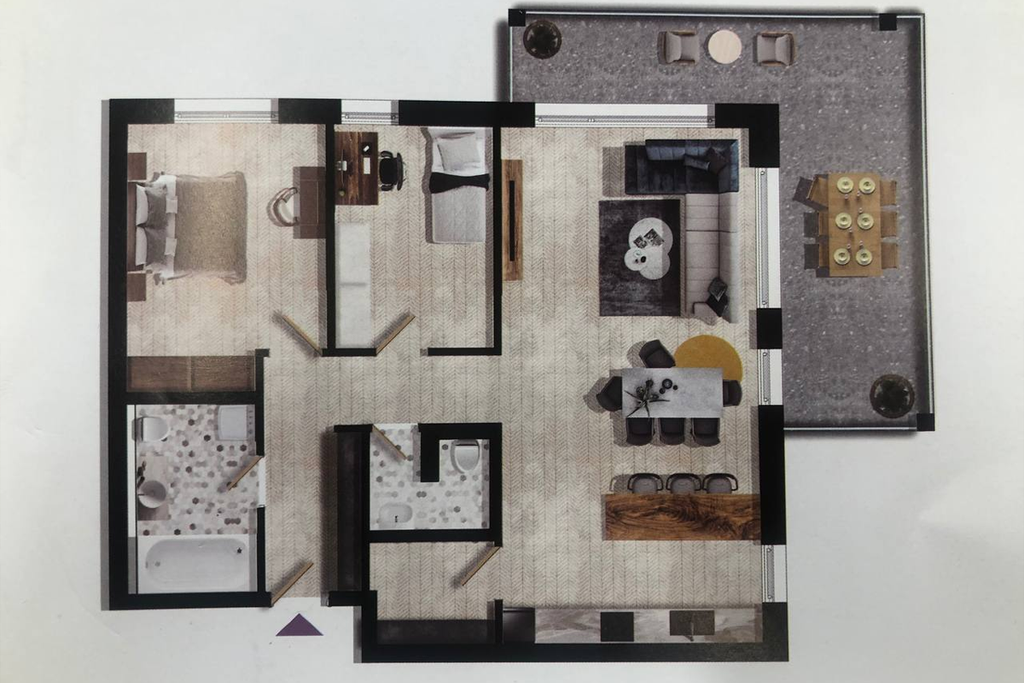 Banesa me sipërfaqe 129.62m² ndodhet në Emshir, afër Kolegjit Heimerer, ndërtim i Erta Invest, në kompleksin Trea, me orientim nga juglindja.