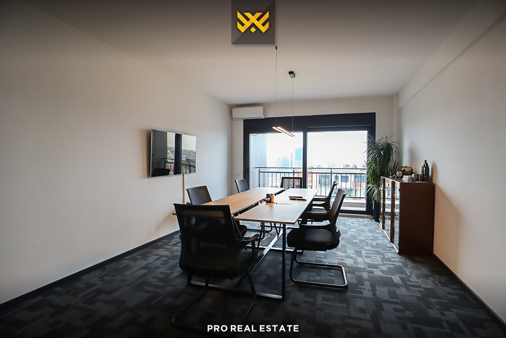 Zyra ka orientim nga lindja dhe perëndimi, është e mobiluar dhe e renditur në këtë mënyrë: tri dhoma pune, një kuzhinë, dy banjo dhe një ballkon.