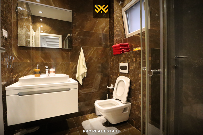 Është tërësisht e mobiluar dhe e ndarë në bodrum, katin përdhesë dhe dy kate të tjera.