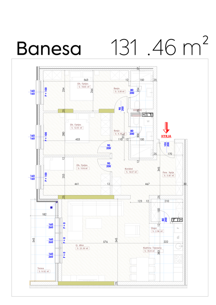 Banesa gjendet te Prishtina e Re në kompleksin “Melia” të ndërtuar nga “Flux”. Banesa është duke u ndërtuar me cilësi, siguri dhe me qëllim që të ofrojë hapësira të shfrytëzueshme dhe komoditet për banim. Ky objekt është i pozicionuar në një lokacion me perspektivë të lartë dhe është shumë e përshtatshme për banim.