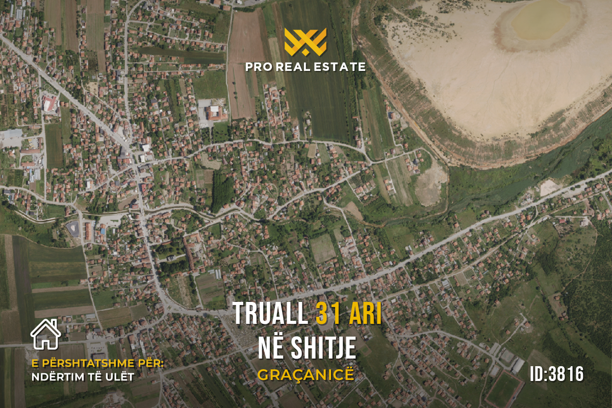 Ofrohet për shitje trualli me sipërfaqe 31 Ari në Graçanicë, në magjistralen Gjilan–Prishtinë. Trualli ka fletë poseduese, infrastrukturë të plotë dhe qasje në rrugë kryesore.