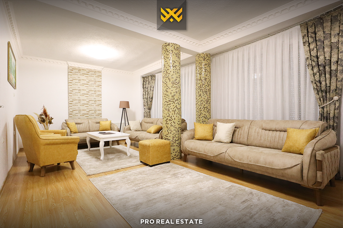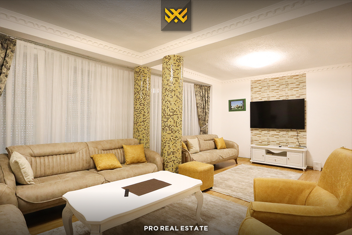 Ka orientim ideal nga të gjitha anët, e ndarë në tri etazha shtëpia ka këtë renditje të hapësirave të brendshme: në katin e parë ka dy qëndrima ditor me kuzhinë, pesë dhoma të gjumit, banjo dhe dy ballkone. Në katin e dytë ka po të njëjtën renditje, si dhe bodrum me tri hapësira të shfrytëzueshme. Shtëpia gjithashtu ka dy lokale me sipërfaqe nga 35m²