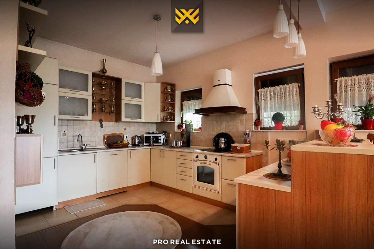 Shtëpia ka orientim ideal nga të gjitha anët, është e ndarë në tri etazha dhe ka këtë renditje të hapësirave të brendshme: në katin përdhesëka qëndrim ditor me kuzhinë, një dhomë të gjumit (master bedroom), dhomë pune,banjo dhe tualet. Në katin e parë ka qëndrim ditor me kuzhinë, dy dhoma të gjumit, banjo dhe ballkon. Ndërsa, në katin e dytë ka një dhomë të gjumit, biblotekë dhe ballkon.