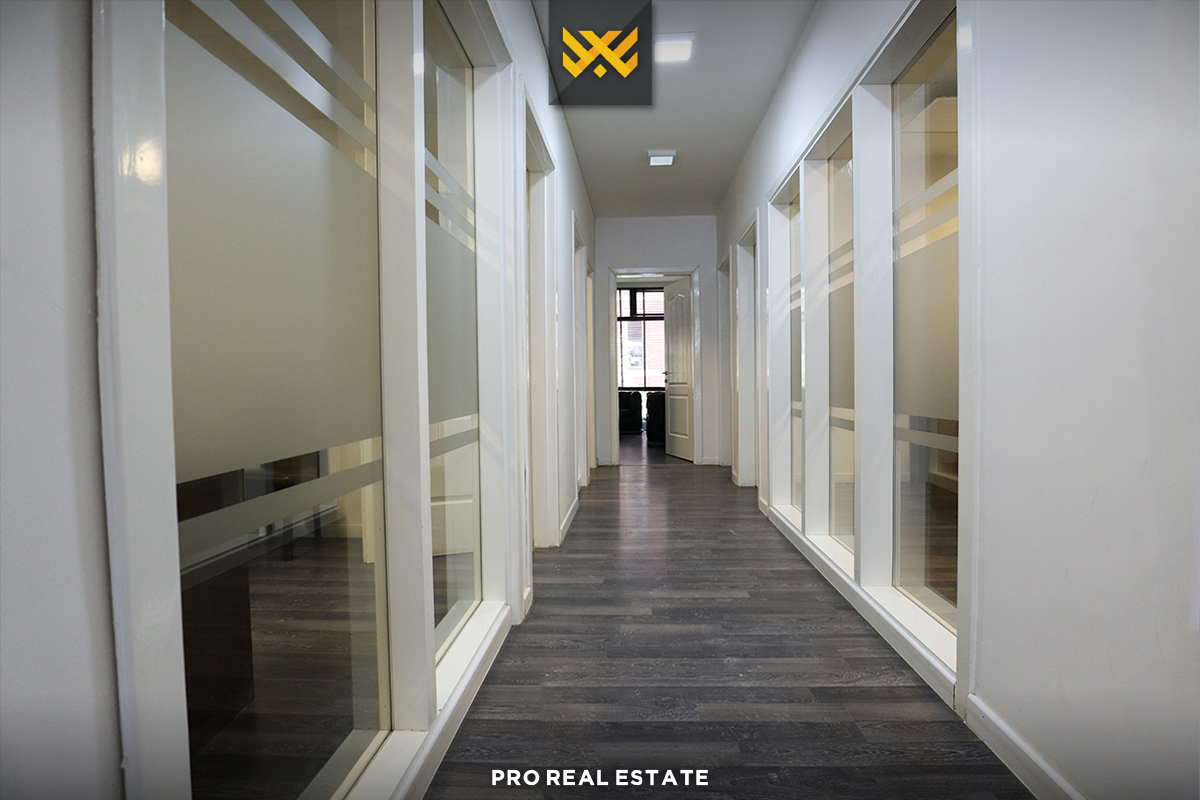 Lokali ka orientim nga lindja dhe perëndimi dhe ka gjithsej gjashtë hapësira pune, një kuzhinë dhe dy tualete.