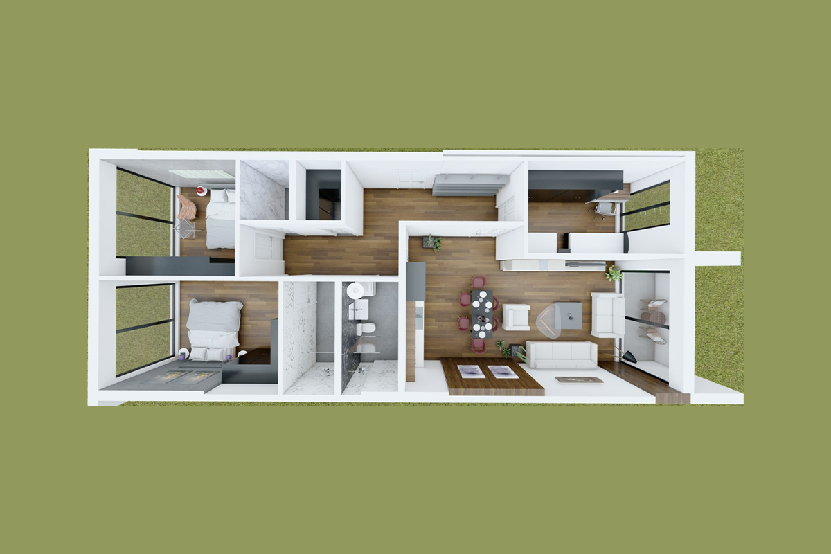 Në këtë projekt ofrohen gjithsej 25 tipe të banesave, duke filluar nga 54m2 deri në 132m2, për t’ju përshtatur të gjitha kërkesave të mundshme për secilën nevojë banimi.