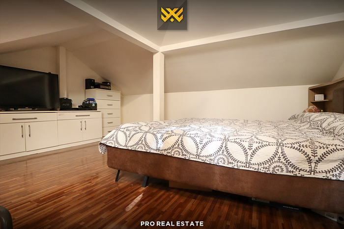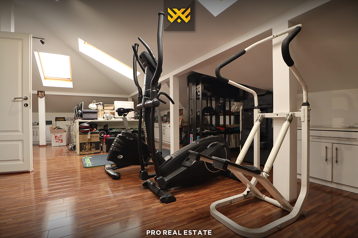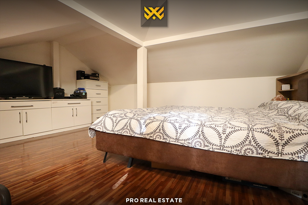 Në katin e parë ka tri dhoma gjumi me dy prej tyre master, një banjo dhe ballkon ndërsa nënkulmi ka një dhomë gjumi dhe hapësirë të shfrytëzueshmeku ka edhe pajisje fitnesi.